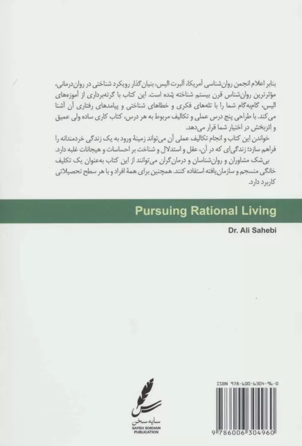 بنابر اعلام انجمن روان‏شناسی آمریکا، «آلبرت الیس»، بنیان‏ گذار رویکرد شناختی در روان‏ درمانی، مؤثرترین روان‏شناس قرن بیستم شناخته شده است. این کتاب با گرته‏ برداری از آموزه ‏های الیس، به طور گام‏ به‏ گام شما را با تله‏ های فکری و خطاهای شناختی و پیامدهای رفتاری آن آشنا می‏ کند. با طراحی پنج درس عملی و تکالیف مربوط به هر درس، یک کتاب کار ساده ولی عمیق و اثر بخش را در اختیار شما قرار می ‏دهد. خواندن این کتاب و انجام تکالیف عملی آن می‏ تواند زمینه ورود به یک زندگی خردمندانه را فراهم سازد، زندگی‏ ای که در آن، عقل و استدلال و شناخت بر احساسات و هیجانات غلبه دارد.